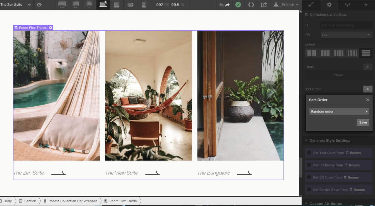 The Sorting order is set to random. That means that every time the user loads the page the order of the rooms will vary.
